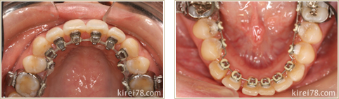 リンガル矯正の最新装置で、前歯の歯肉の清掃姓が問題になりますが、シャッタータイプのため、清掃姓が期待できます。