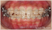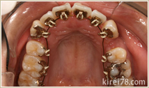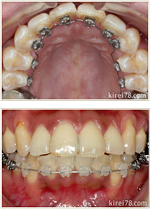 下の歯は、表側にセラミックの装置をつけホワイトワイヤーで治療。