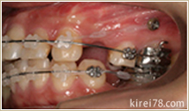 歯をミニススクリュー(小さなねじ)から引っ張る方法で歯の移動の確実性や安定性が期待できます。方法:表面麻酔(塗る麻酔)行ってから、少しだけ麻酔をうちます。歯を抜く時の1/3~1/4くらい。歯を抜いたスペースがなくなったら取り除きます。この処置は、当院で行います。